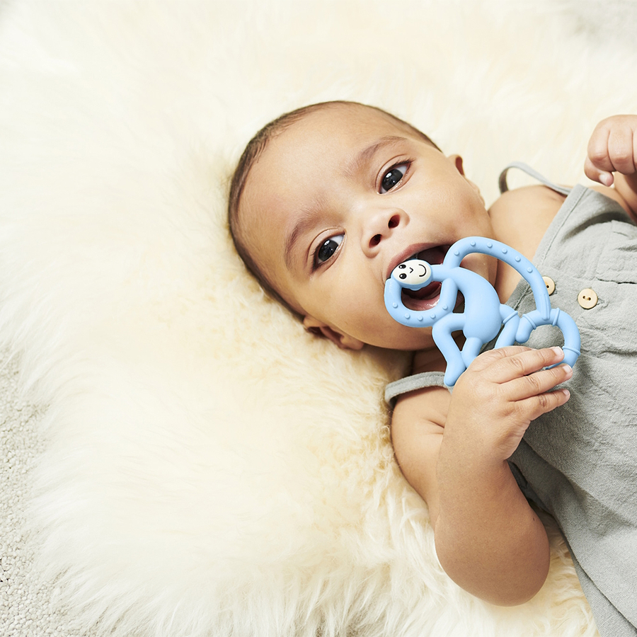 Dettagli del prodotto: Età: da 3 mesi La simpatica scimmietta di Matchstick Monkey sostiene il bambino durante la dentizione Con diverse texture e nodi per la dentizione Può essere raffreddato Sterilizzabile e lavabile in lavastoviglie Realizzato in silicone alimentare L'ausilio per la dentizione è dotato di tecnologia antimicrobica BioCote® per la massima igiene Leggero e di forma ergonomica per essere facilmente impugnato dalle mani più piccole Favorisce lo sviluppo motorio Design: Monkey mini, azzurro Materiale e dimensioni: Materiale: silicone alimentare (senza BPA) Dimensioni: circa 10 cm Istruzioni per la conservazione e la cura: Può essere conservato in frigorifero Sterilizzabile Lavabile in lavastoviglie Pulire accuratamente prima dell'uso La consegna include: 1 x teether scimmia mini, azzurro