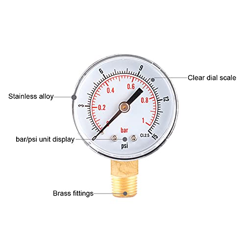 Matedepreso - Manometro compatto per piscina e vasca idromassaggio in lega inox con quadrante trasparente (dimensioni: 0-15psi 0-1bar)
