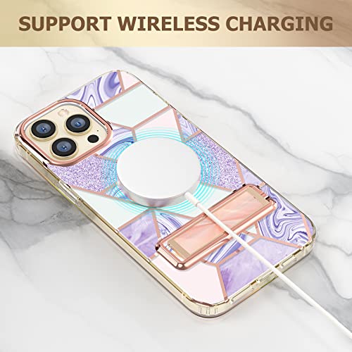 MATEPROX Cover compatibile con iPhone 13 Pro Cover in marmo lucido duro PC Custodia protettiva elegante geometrica antiurto cover per iPhone 13 Pro 6,1'' 2021-viola con supporto