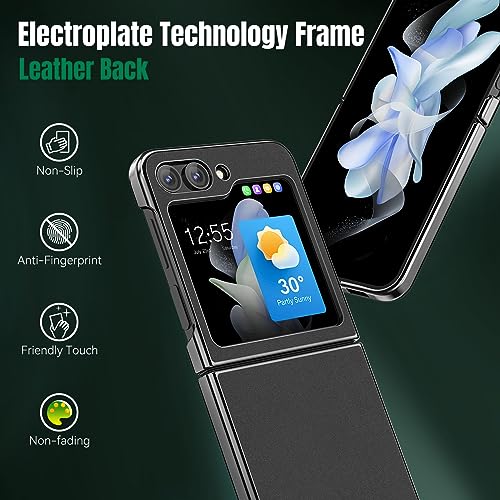 MATEPROX Cover Compatibile con Samsung Galaxy Z Flip 5 Custodia con Cornice Placcata, Ultra Sottile e Leggera Cuoio Protezione Custodia per Galaxy Z Flip 5 5G 2023-Nero