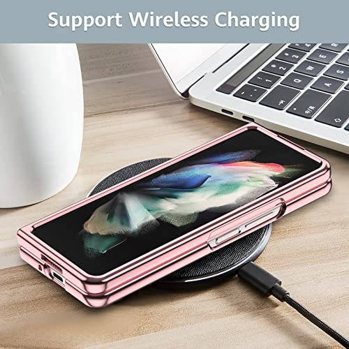 MATEPROX Cover Compatibile con Samsung Galaxy Z Fold 4, Ultra Sottile e Leggera Cuoio Protezione Case Custodia Con Cornice placcata per Galaxy Z Fold 4 5G 2022-Rosa