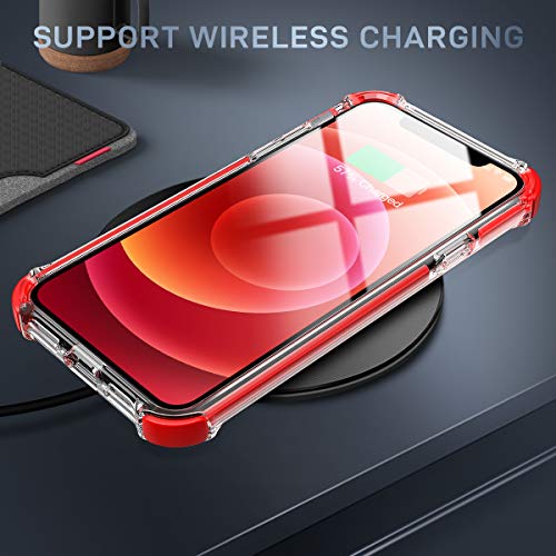 MATEPROX Custodia per iPhone 12 Pro/iPhone 12, 4 Angoli Anti caduta Protettiva Cover con Chiaro Duro PC, Trasparente Antiurto Custodia per iPhone 12 Pro/iPhone 12 6.1''-Rosso