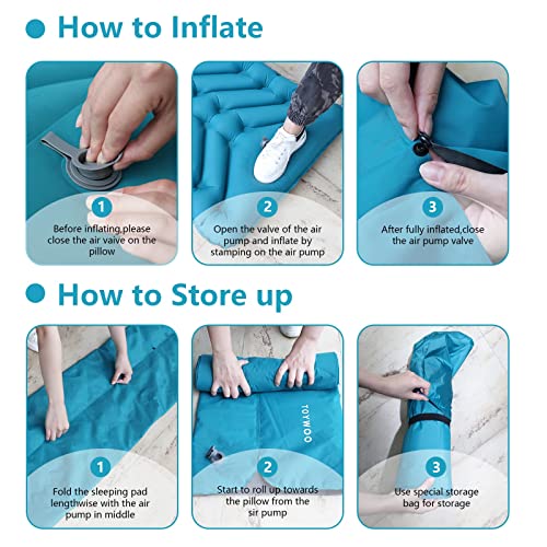 Si gonfia e si sgonfia rapidamente: basta semplicemente calpestare la pompa ad aria integrata nella parte inferiore del tappetino da campeggio per soli 30 secondi per gonfiare, non dovrai più gonfiare con la bocca, le mani o portare una pompa. Basta prendere 1 secondo per ottenere super veloce da sgonfiare.
