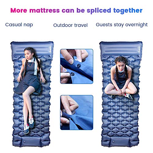【Ampia gamma di usi】I cuscini d'aria gonfiabili possono essere utilizzati non solo nelle attività all'aperto,ma anche all'interno,come sdraiarsi e riposare durante la pausa pranzo in ufficio.Se hai due materassi,usare i pulsanti laterali per collegare i due materassi insieme sarà più adatto per le attività all'aperto.