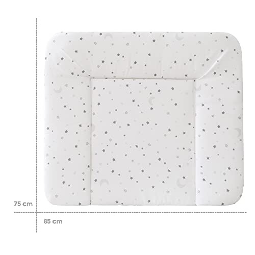 Roba Materassino per Fasciatoio Sternenzauber, 3 Bordi Rialzati, Facile da Pulire, Stampato con Stelline, 85 x 75 cm, Bianco