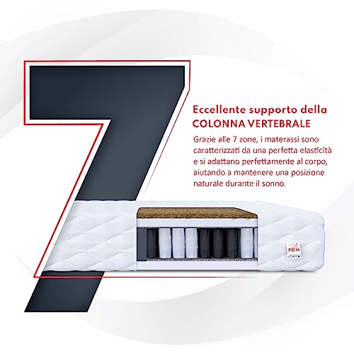 Materasso FDM Home MAX 160x200 a molle insacchettate con uno strato di cocco 7 zone differenziate Oeko-Tex Altezza 24 cm Rigidità H3 adatto a chi soffre di allergie Rivestimento sfoderabile lavabile