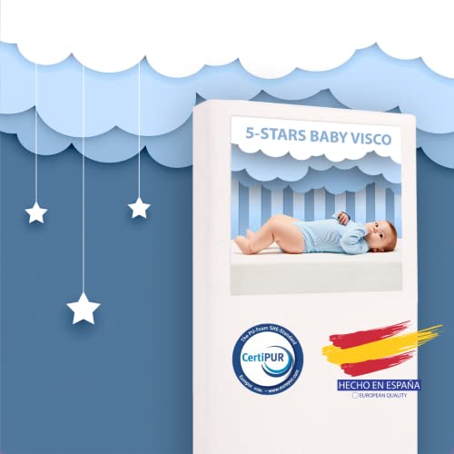 Materasso per culla viscoelastico, 140 x 70 cm, altezza 10 cm, prodotto in Spagna, fodera sfoderabile, fresco e traspirante, extra morbido, certificato Oeko-Tex e CertiPUR