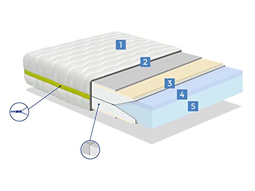 Nucleo in schiuma con durezza morbida con micro perforazioni che garantiscono una buona ventilazione eliminando calore e umidità. È di densità adatta per adattarsi al corpo del bambino ed eliminare le aree di pressione riducendo l'agitazione notturna. Inoltre, sulla parte superiore del materasso ha uno strato di 3 cm di viscoelastico termoretraibile e altamente adattabile.