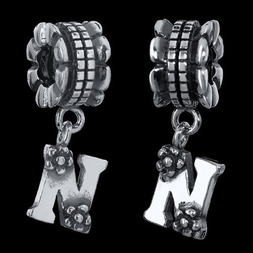Charm in argento, lettera N, dimensioni: 5 x 20 mm (larghezza x altezza)