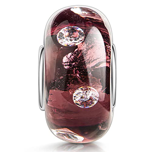 MATERIA 925 argento ciondolo in vetro di Murano rosa antico con strass ddeco per Beads braccialetto/collana #1247