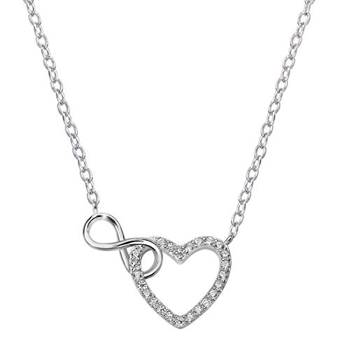 MATERIA, collana da donna con cuore e simbolo dell'infinito, con zirconia, in argento 925, regolabile tra 41 e 44 cm, con confezione regalo #K59