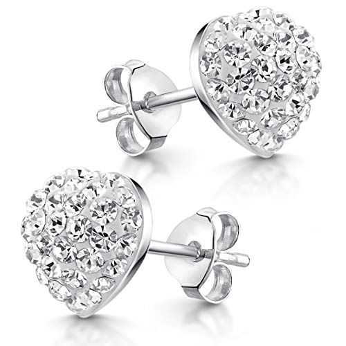 Materia cristallo orecchini a forma di cuore bianco - 925 argento orecchini donna cuore 9 x 9 mm con cristalli bianchi a con Box #SO-98