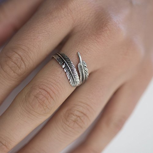 MATERIA gioielli 925 argento anello norvegese, - anello da donna in argento anticato piuma in taglia 52 - 60/taglia regolabile #SR-23