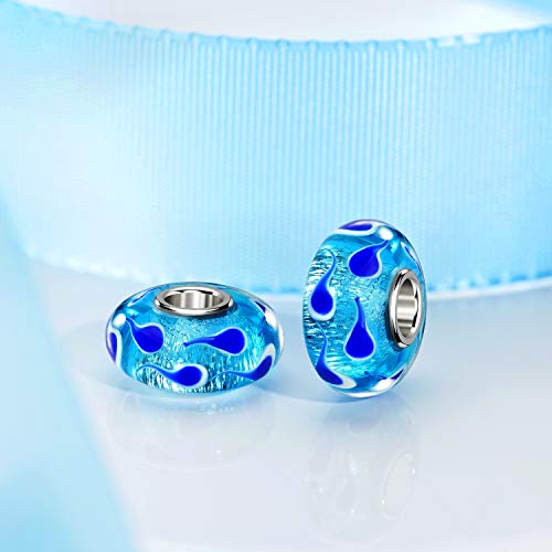 MATERIA gioielli in vetro di Murano a forma di pesci blu - 925 argento Murano perline perla blu con fogli inghiottiva #975