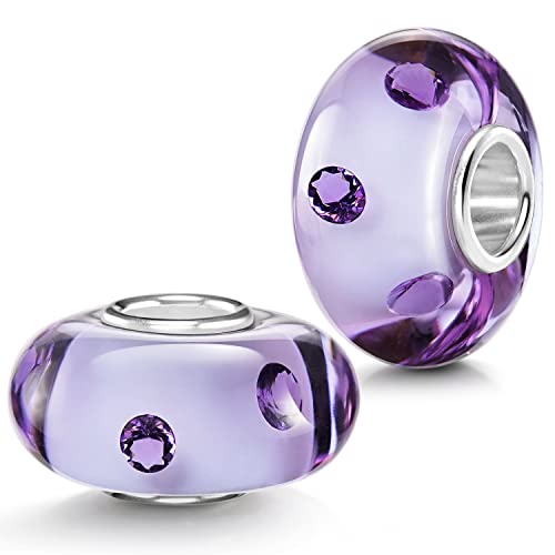 Materia Gioielli in vetro di Murano con zirconi blu viola - argento 925 perle di vetro per bracciale # 1525