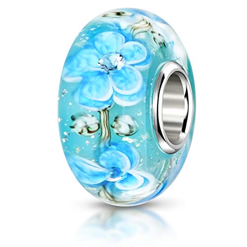 MATERIA Murano perle zirconi Element blu giada con strass ddeco - 925 argento vetro di Murano perline fiori takasugi #1259