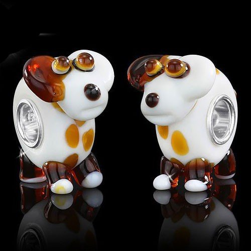 MATERIA 3d Murano vetro Beads cane bianco marrone - Bambini Ciondolo in argento 925 per Beads braccialetto/collana # 1019