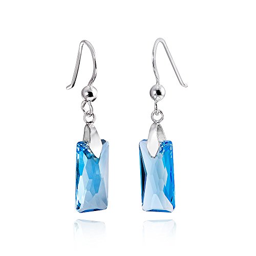 Materia - Orecchini da donna rettangolari in argento 925 con cristalli Swarovski, colore nero o blu, #SO-372 e Argento, colore: blu acquamarina, cod. #SO-372