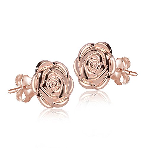 Eleganti orecchini a forma di fiore in oro rosa in argento sterling 925 placcato oro, con ottima lavorazione in argento battuto tedesco.