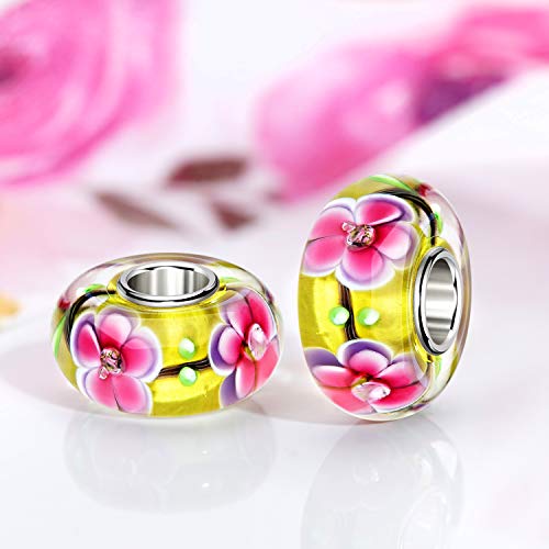 Materia Perle in vetro di Murano con zirconi e design a fiori con manicotto in argento 925/Dimensioni: 7 x 13 mm (larghezza x altezza)
