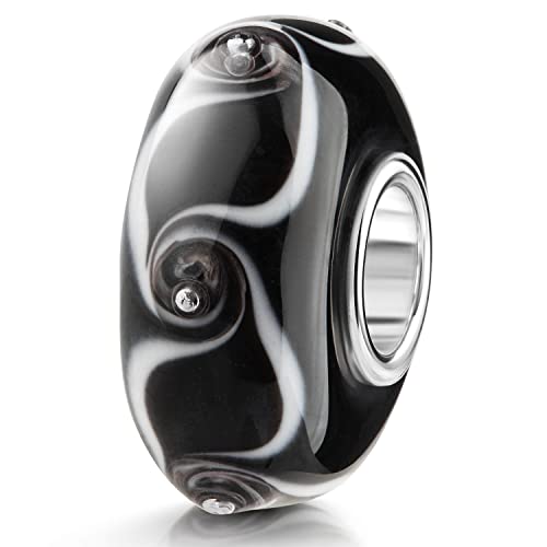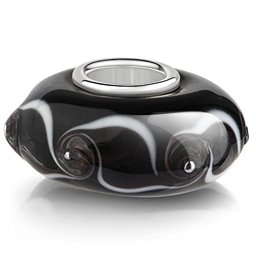 Materia Perlina 3D in vetro di Murano nero e in argento 925, per braccialetto con perline, codice articolo #46