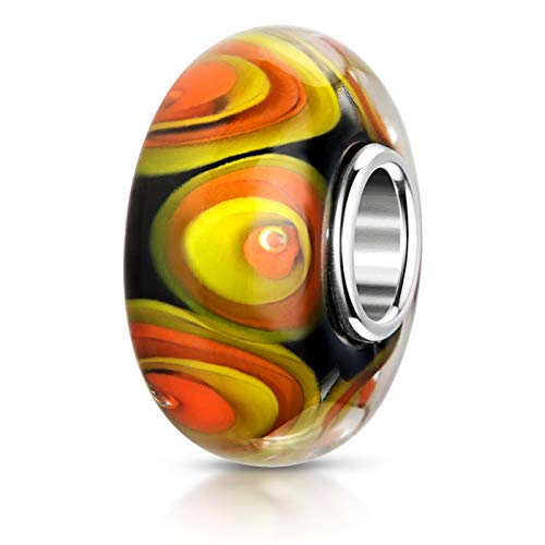 MATERIA - Perline in vetro di Murano arancione, nero e giallo, in argento 925, in vetro di Murano, colore nero/arancione #1661