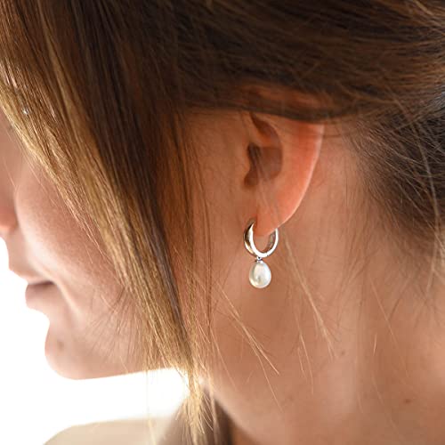 Gli orecchini a cerchio sono appesi una singola perla d'acqua dolce bianca. Per proteggere gli orecchini in argento dall'ossidazione, sono stati inoltre dotati di un rivestimento in rodio.