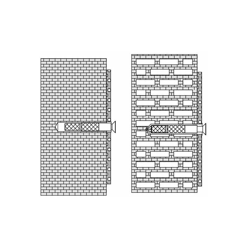 Viti in acciaio inossidabile 3x, 1 disco in acciaio inossidabile, maniche di ancoraggio 3x, maniche 3x sieb Ø 18 mm, numero generale di approvazione strutturale: Z-21.3-1830 Malta a iniezione ordine o messa sul lato della costruzione.