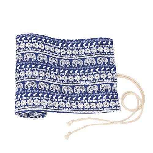 Matita Astuccio Arrotolabile Pencil Wrap Pastelli Sacchetto Roll-up di Canvas Astuccio portapenne di 48 slot Pratico Resistente stampa boho Regalo di Cancelleria-Luogida (Elefante 02)