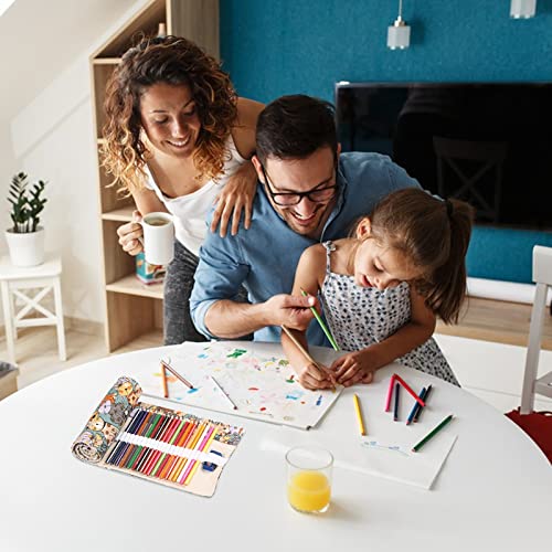 ♥ Grande capacità pratica: questo astuccio arrotolabile in tela può contenere 48 matite colorate e ogni fessura è estensibile.Puoi inserire facilmente una matita.Fatto a mano e realizzato in materiale di tela intrecciata di alta qualità, ha durevolezza e modelli alla moda, ed è un astuccio ideale per studenti e artisti.