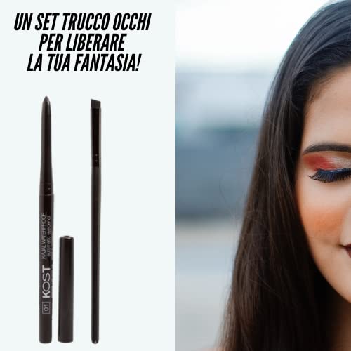 Matita Occhi Nera Waterproof Automatica con Pennello Eyeliner Angolato Matita Nera Occhi Lunga Durata Pennelli Trucco Viso Make Up Kit Kajal Occhi