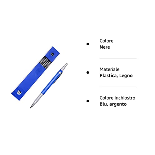 HB - Matita a pressione con 10 ricariche per matite, disegni, falegnami, fai da te, schizzi, 2,0 mm (blu)