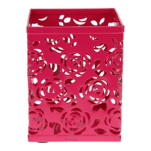 BXT® Vaso a matita quadrato in metallo Porte-Plume Organizzatore scrivania multifunzione matita vaso pennello in rosa fiore scatola Penne scrivania - Vasetto portaoggetti per ufficio rosa scuro