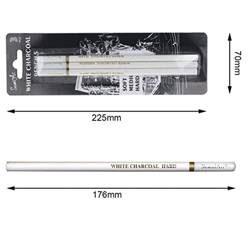 Matite Bianca, 3Pezzi Matita Bianca Carboncino Matita Professionale Per Schizzi Per Evidenziare Il Disegno Artistico Strumento Penna da Disegno non Tossico per Forniture Artistiche Morbido/Medio/Duro