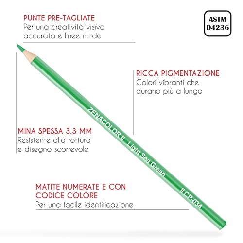 MATITE PER COLORARE MORBIDE, GRASSE E PRECISE - Le matite colorate per adulti Zenacolor hanno una mina con una punta di 3.3 mm a base d'olio per quaderni e libri da colorare per adulti o altro: che voi siate degli artisti professionisti o principianti, questi colori matita per grandi, vi sorprenderanno per la loro qualità
