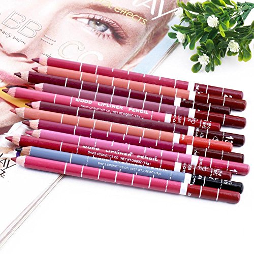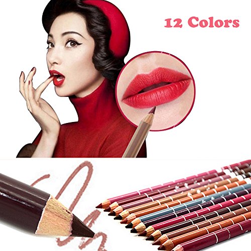 Matite per labbra, Matita Rossetto Trucco, Matita Lip Marker labbra, Definer Lip Liner Pencil Set Impermeabile duratura Matita Labbra 12 Colori professionale Lipliner con coperchi Professional Lip Makeup Kit, Colori cosmetici trucco Matita Matita Rossetto per Labbra contorni, Length 15cm,12 Colori