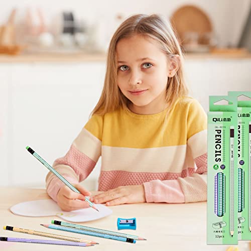 24 matite HB, matite per scuola, matite in legno, antiscivolo, multicolore con gomma e 2 temperamatite per bambini, studenti, strumenti da disegno per scuola e ufficio