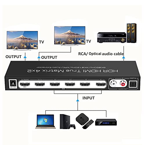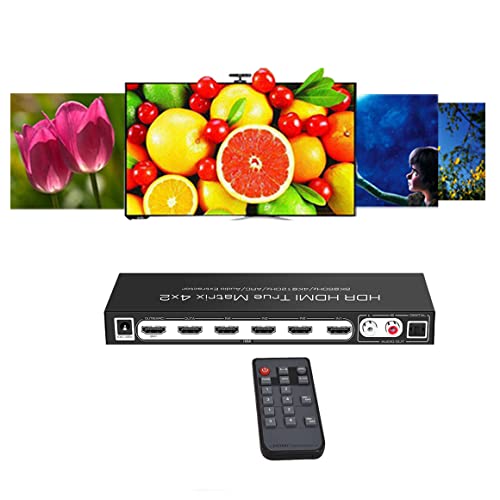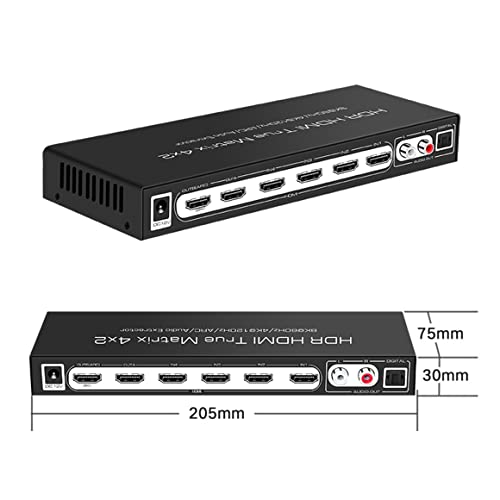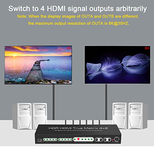 2.1 HDMI Matrix 4x2 8K @ 30HZ 60HZ 4K@ 60HZ 120HZ HDR ARC/CEC Switch Splitter 4 Ingressi 2 Uscita con SPDIF e estrattore audio RCA L/R con telecomando IR