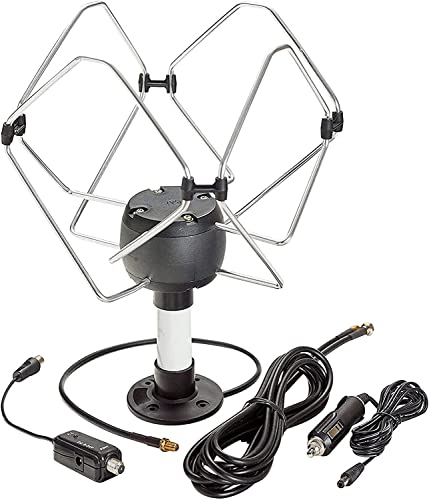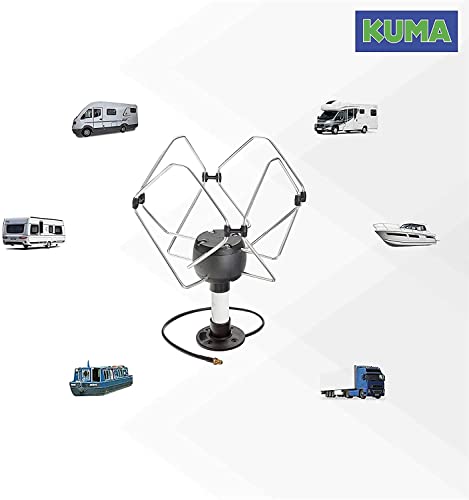 KUMA Matrix Kit Amplificatore di Segnale per Antenna TV - Esterno Digitale HD Antenne Amplificata per Roulotte Camper Furgoni Camion Barca - Base Vite Portatile Potenziatore per Antena HDTV - 12v volt