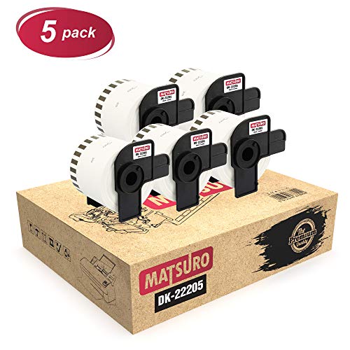 Matsuro Originale | Compatibili Rotoli Etichette Continuo Sostituzione per BROTHER P-TOUCH DK-22205 DK22205 (62 mm x 30,48 m | Confezione da 5)