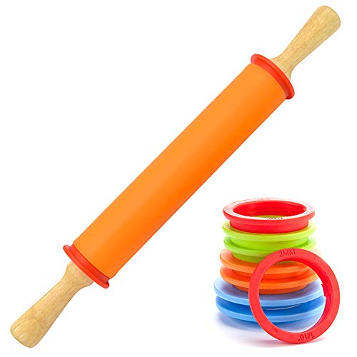 DSL - Mattarello con 4 dischi regolabili in silicone, manico in legno, antiaderente