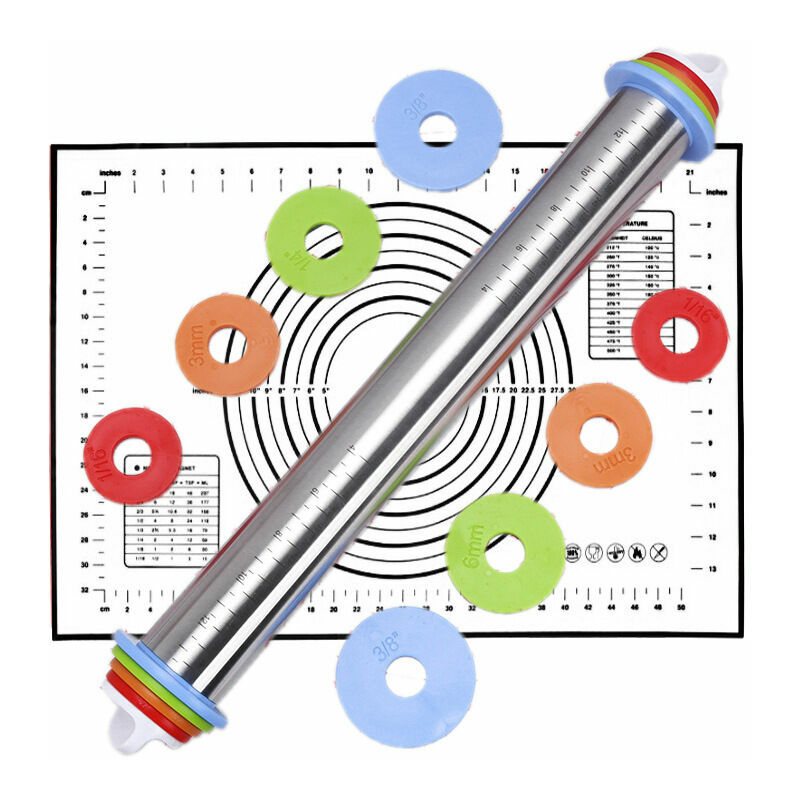 Regalo perfetto: quattro diverse dimensioni (10 mm/6 mm/3 mm/2 mm) sono fornite a ciascuna estremità del prodotto per regolare la torta con diversi spessori. Una squisita confezione esterna può essere regalata ad amici e parenti. Facile da pulire e conservare: il materiale è in acciaio inossidabile senza fori.Non ci sono residui dopo l'uso per evitare la contaminazione incrociata (rispetto alle tagliatelle in acciaio inossidabile).legno)Qualsiasi odore o colore sull'impasto è facile da pulito e puoi usare la lavastoviglie. Il pad impastatore flessibile con funzione di misurazione ha un'elevata resistenza al calore e può essere posizionato in piano su qualsiasi superficie per evitare impasti non appiccicosi e per mantenere pulito il ripiano. SICURO NON -TOSSICO: il prodotto è realizzato in acciaio inossidabile n. 430 e resina PP. Il cuscino da pasticceria è realizzato al 100% in silicone alimentare. Il design del materiale è spesso e molto caustico. I prodotti ts soddisfano gli