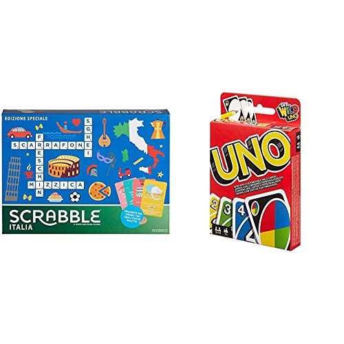 Mattel Games - Scrabble Italia - Edizione Speciale Gioco di Parole Crociate, anche in Dialetto, per Tutta la Famiglia, GGN24 &UNO Gioco di Carte, W2087