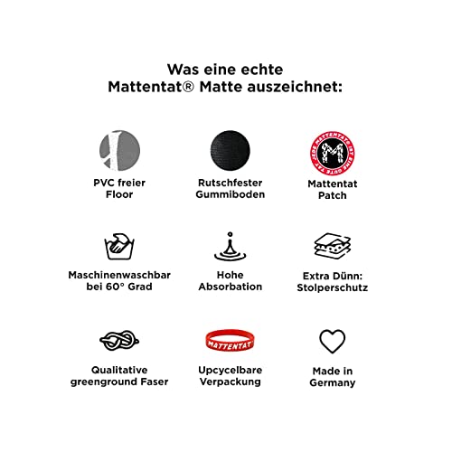 Utilizzo universale: con una dimensione ottimale di 40 x 60 cm e un'altezza totale di 6 mm, i tappetini Mattentat si adattano a qualsiasi porta di casa o corridoio.