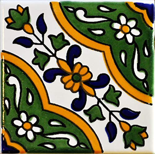 20 Mattonelle tipo MAADNOUSSI in ceramica smaltata 10x10 cm spessore 0,6 cm - Mattonelle Tunisine realizzate con Serigrafia Artigianale (Verde). Adatte a rivestimento.