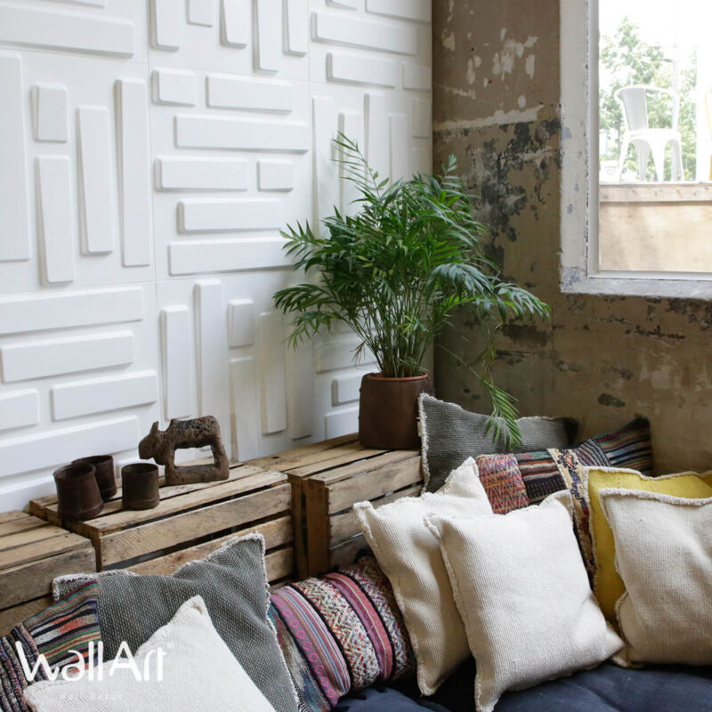 Presentazione: Mattoni pannello di parete 3D Wallart 3M2 100% riciclato e biodegradabile al 100% in fibra di canna da zucchero, animare e dare stile alle vostre pareti. Ideale per decorare forma originale tutti i vostri spazi. Ha votato il prodotto verde più innovativo nel 2009, questi pannelli possono essere verniciati in qualsiasi colore con vernice acrilica. I 20 modelli disponibili consentono di avere la possibilità di decorare tutti i vostri spazi. Caratteristiche: Imballaggio: 12 piatti è formato 3m2: 500x500mm con +/- 0.5mm su ogni lato Peso: 275g Spessore: Spessore pannello +/- 1,75 millimetri (Tolleranza 0.5 mm): 15mm + Materiale: fibra di canna zucchero Superficie: liscia infiammabile: Classe C acustica: acustico proprietà di isolamento Suggerimento: se un pannello è danneggiato, è possibile applicare un rivestimento o sostituire il pannello unico di installazione: Fase 1: Wallart segni deve prima di primo essere collocato 48 ore nella stanza dove verranno installati per
