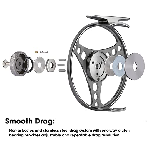 Grande capacità di lenza: il design con grande pergolato lo rende sufficiente per caricare la lenza di supporto per mosche e lenza principale per la pesca a mosca. Il design di grande trascinamento del pergolato è utile per il recupero rapido della linea e la protezione del ribaltamento