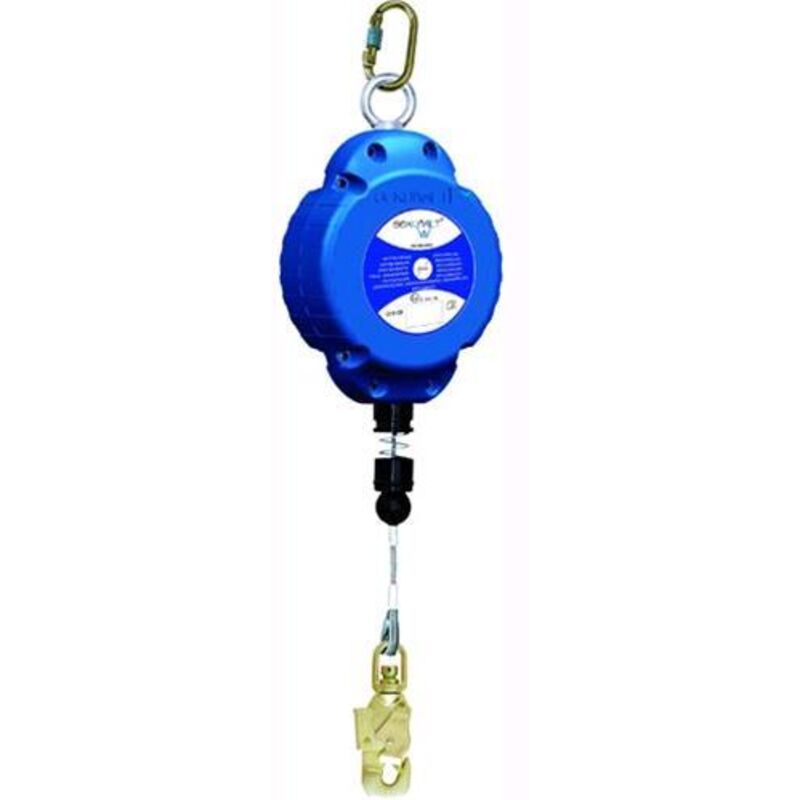 Dispositivo anticaduta retrattile per utilizzo verticale - Carter robusto e resistente al calore - Segnalatore di caduta - Cavo in acciaio da 10 mt. Ø 4 mm. - Connettore ovale con chiusura con ghiera a vite per la connessione al punto di ancoraggio - Norme 0426 EN 360/02 - Cf. in scatola
