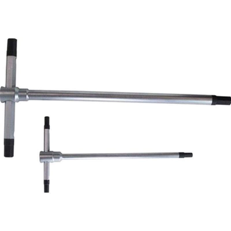 In acciaio cromo vanadio - Chiave a "T" a tre estremita' - Cf. su placchetta Confezione: 1 PZ Misura 4 mm. Lunghezza 195 mm.
