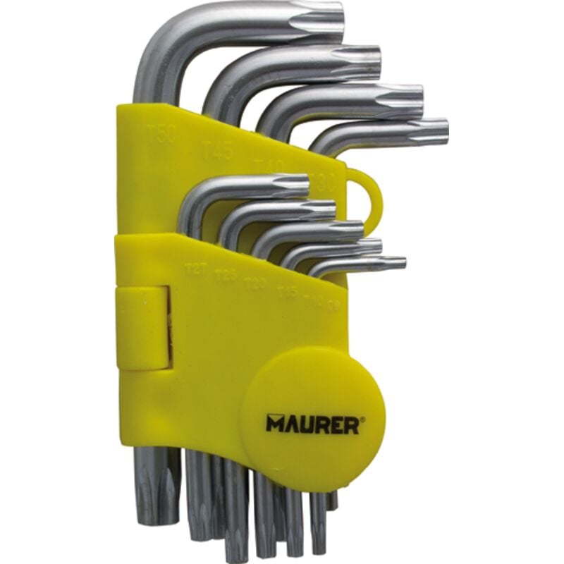 In acciaio cromo vanadio satinato - Serie da 9 pz. - (T10, T15, T20, T25, T27, T30, T40, T45, T50 con foro) - Astuccio in Pvc - Cf. in blister Confezione: 1 SR Serie 9 pz.